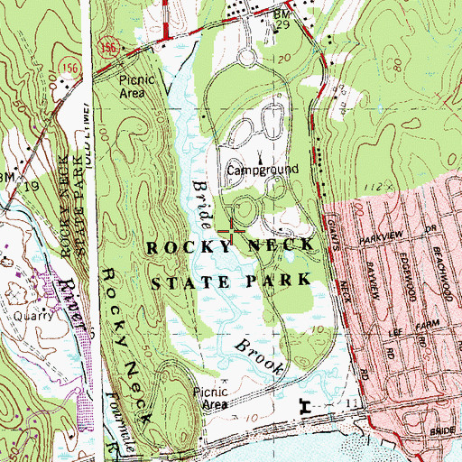 Rocky Neck State Park is situated northeast of South Lyme close to Bride Brook Historical Plaque. 800 AM - 500. The public now enjoys use of the park because of a few farsighted conservationists who secured the land in 1931 using their personal funds until the State Legislature authorized its purchase.