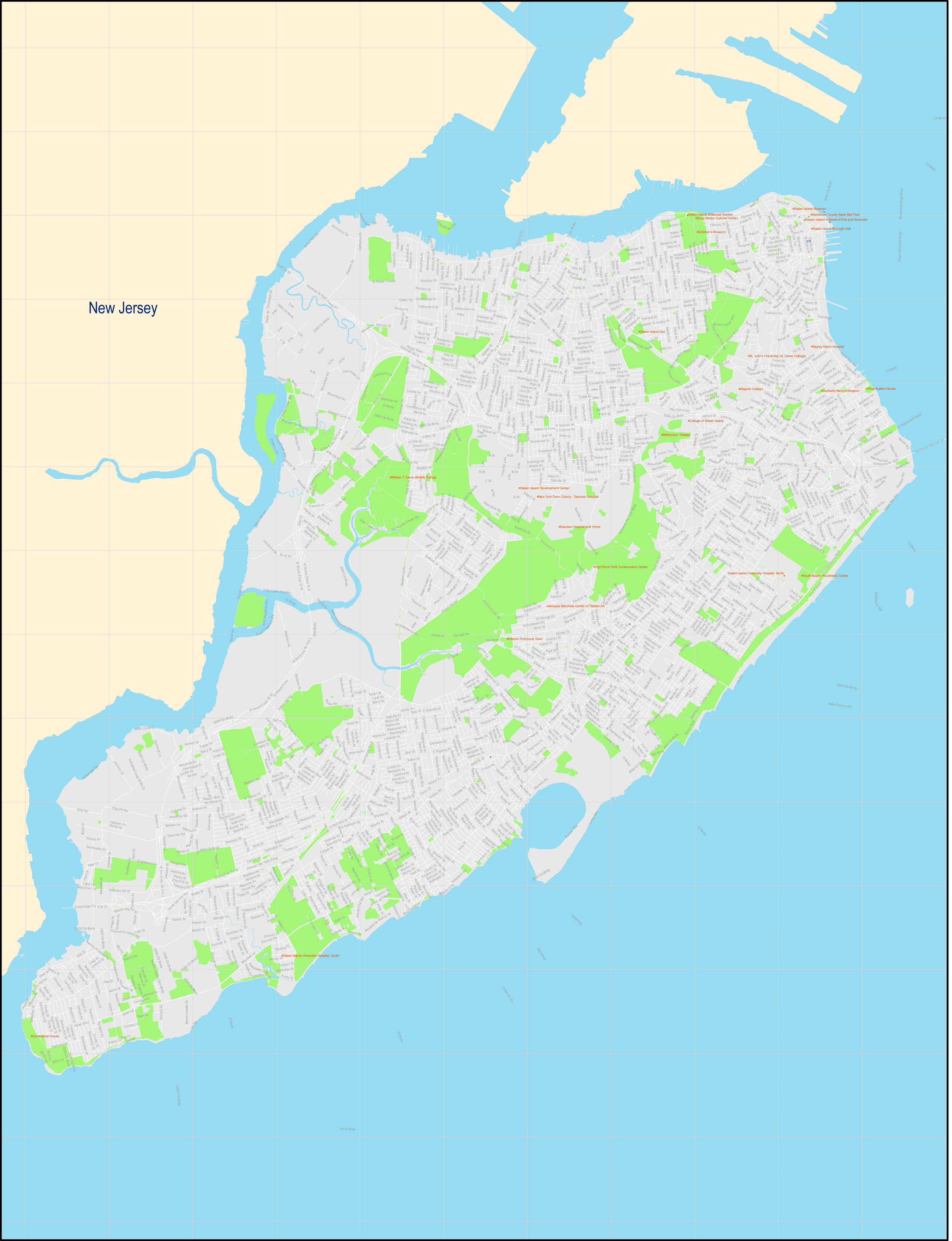 Editable Staten Island Street Map With Zip Codes Illustrator Pdf Digital Vector Maps